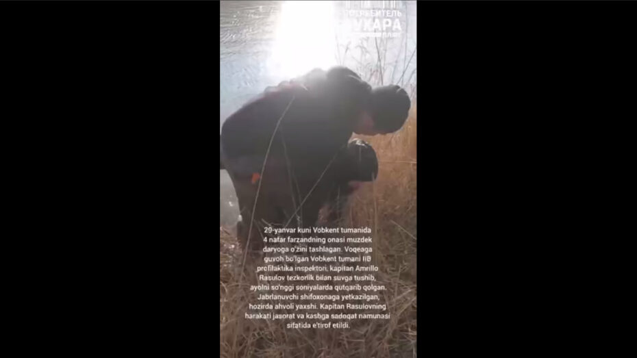 Ажал билан юзма-юз: Вобкентда муздек дарёга ўзини отган 4 фарзанднинг онаси сўнгги сонияларда қутқариб қолинди (Видео)