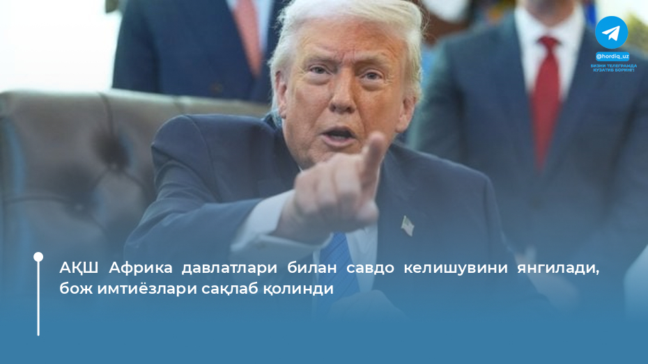 АҚШ президенти Доналд Трамп сешанба куни 25 йиллик African Growth and Opportunity Act (AGOA) келишувини янгилади. Ушбу келишув 32 та...