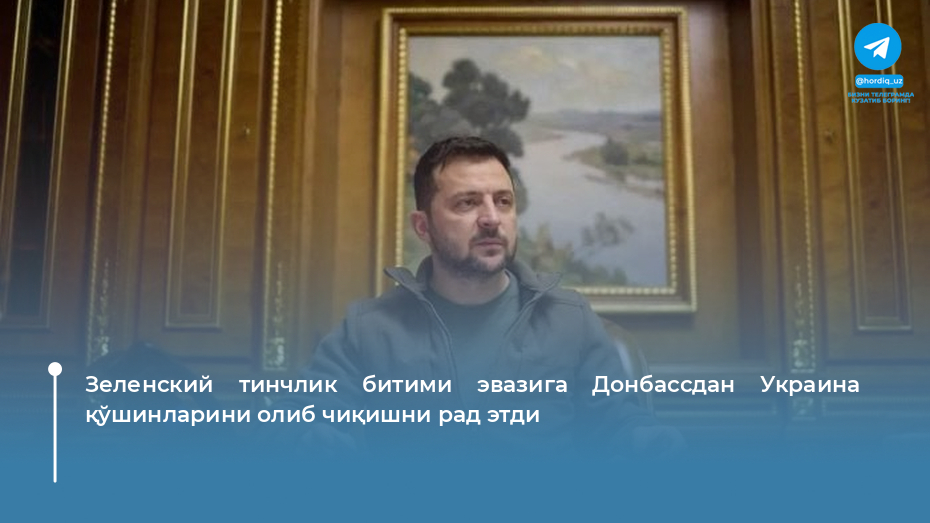 Зеленский тинчлик битими эвазига Донбассдан Украина қўшинларини олиб чиқишни рад этди