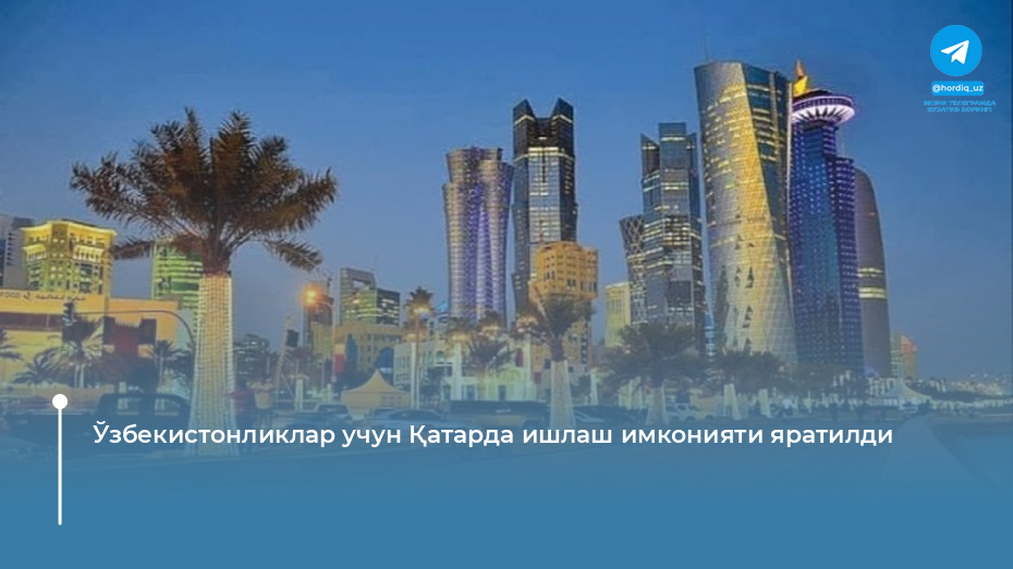 Ўзбекистонлик фуқаролар учун Қатар давлатида меҳнат фаолиятини амалга ошириш мақсадида йирик вакансиялар базаси очилди. Бу имконият Ташқи меҳнат миграцияси агентлиги...