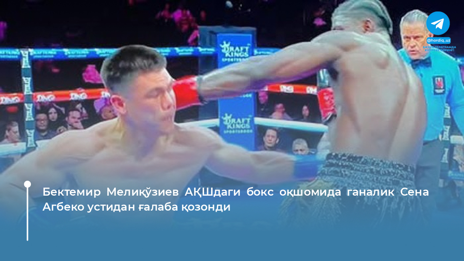 АҚШнинг Невада штати Лас Вегас шаҳрида ўтказилган профессионал бокс оқшомида ўзбекистонлик Бектемир Мелиқўзиев навбатдаги жангини ўтказиб, ғалаба қозонди. Суперўрта вазн...
