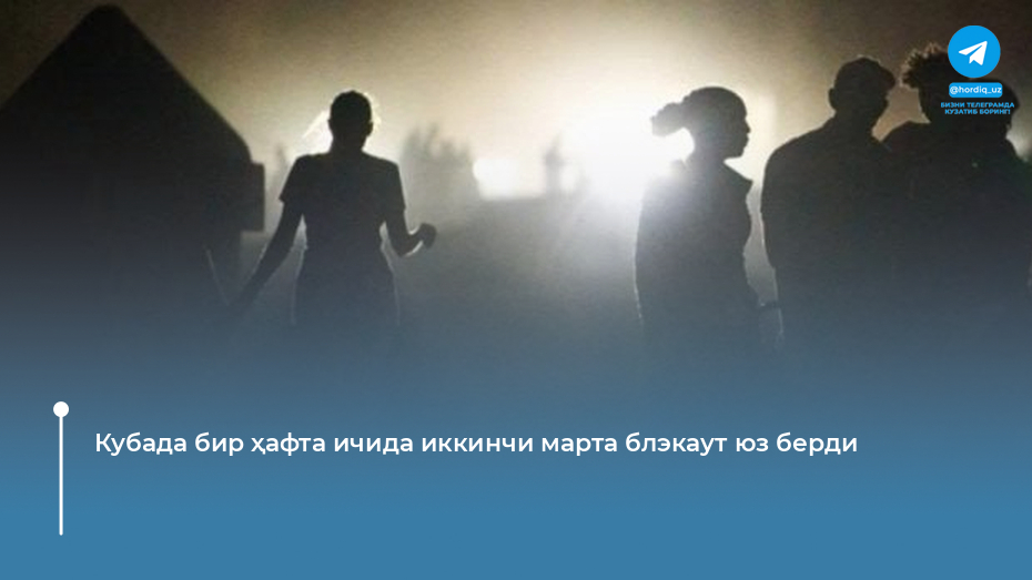 Бу ҳақда Куба Энергетика вазирлиги Х ижтимоий тармоғида маълум қилди. "Миллий электр таъминоти тизими тўлиқ узилди. Уни қайта тиклаш ишлари...