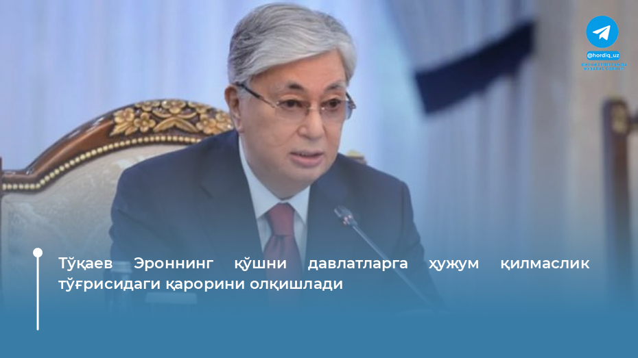 Қозоғистон Президенти Қосим-Жомарт Токаев Эрон Президенти Масуд Пезешкианнинг Муваққат Бошқарув Кенгашининг қўшни давлатларга ҳужум қилмаслик тўғрисидаги қарорини эълон қилган баёнотини...