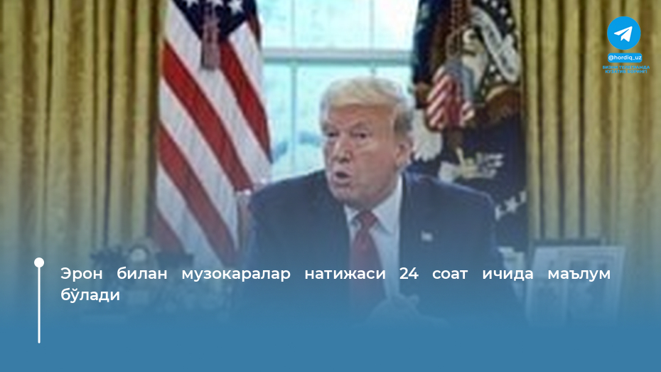 АҚШ президенти Дональд Трамп Эрон билан олиб борилаётган музокаралар натижалари яқин 24 соат ичида маълум бўлишини билдирди. Бу ҳақда New...