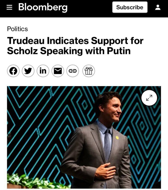 Канада бош вазири Трюдо Шолцнинг Путин билан мулоқотини маъқуллади.