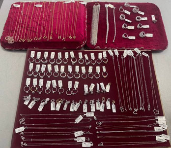 Кўрик давомида ушбу фуқаронинг ички кийимлари ичига яширилган, божхона ходимларининг оғзаки сўров жараёнларида маълум қилинмаган оғирлиги 412 граммни ташкил қилувчи сариқ ва оқ рангли металлдан ясалган, олмос тошлари билан безатилган заргарлик буюмлари борлиги аниқланган.