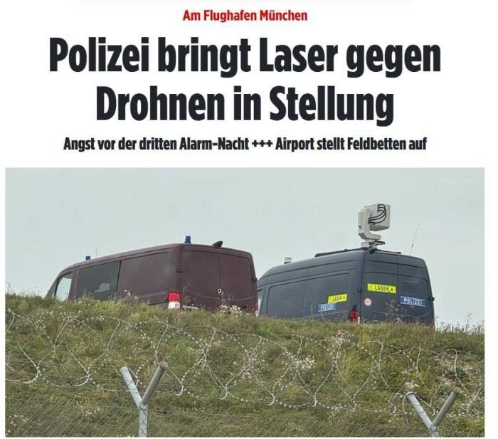 2—3 октябр кунлари тунда Мюнхен аэропорти узра номаълум дронлар кузатилган ва парвозлар вақтинча тўхтатилган эди.