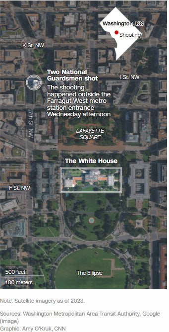 CBS маълумотига кўра, ҳужум уюштирган шахс 2021 йилда АҚШга борган Афғонистон фуқароси. Отишмада икки миллий гвардиячи оғир жароҳатланди.