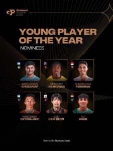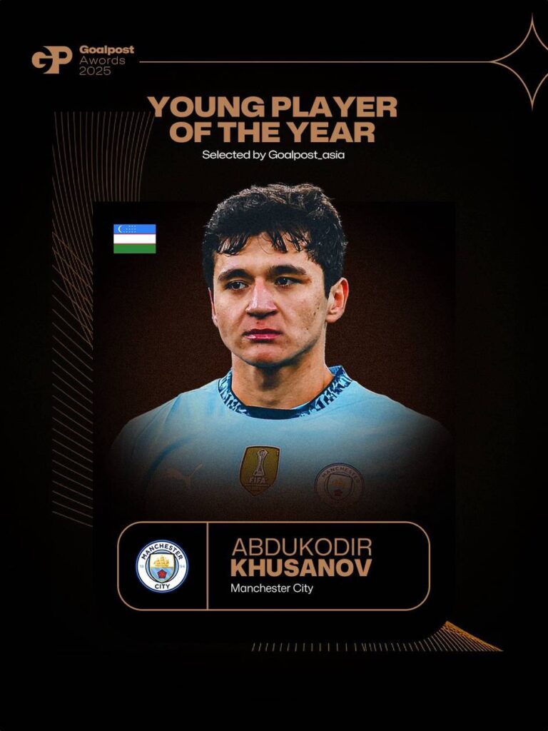 Goalpost нашри томонидан ўтказилган овоз бериш якунларига кўра, Ўзбекистон миллий терма жамоаси ҳамда Англиянинг “Манчестер Сити” клуби марказий ҳимоячиси Абдуқодир Ҳусанов 2025 йилнинг Осиёдаги энг яхши ёш футболчиси деб эътироф этилди.