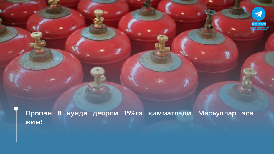Йил бошидан бери, атиги 8 кун ичида, пропан нархи биржада қарийб 15%га қимматлади. Бу ўз навбатида шохобчалардаги чакана нархларга ҳам таъсир қилди:
