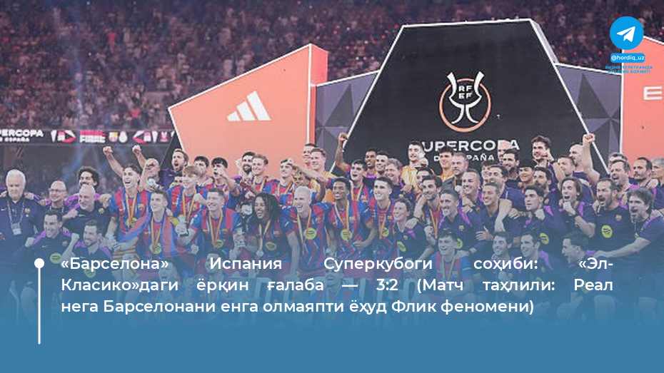 «Барселона» Испания Суперкубоги соҳиби: «Эл-Класико»даги ёрқин ғалаба — 3:2 (Ўйин таҳлили: Реал нега Барселонани енга олмаяпти ёҳуд Флик феноменига назар)