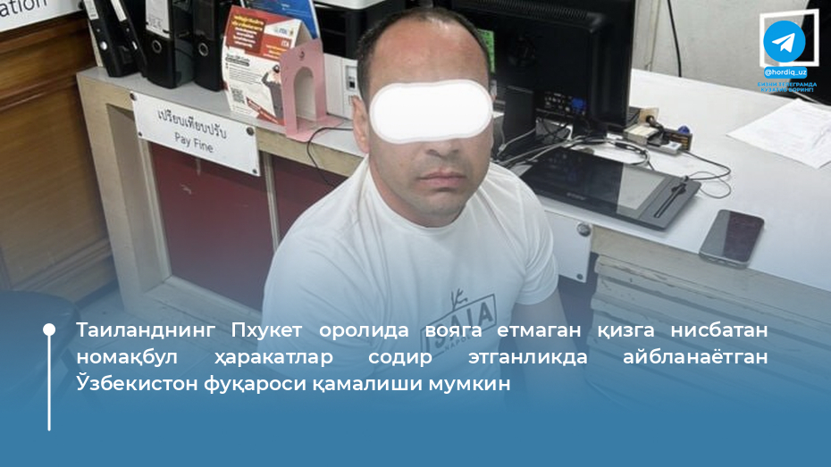Пхукет оролида 37 ёшли Ўзбекистон фуқароси вояга етмаган қизга нисбатан номақбул ҳаракатлар содир этганликда айбланиб, полиция томонидан қўлга олинган. Таиланднинг янгиланган қонунчилигига кўра, унга 10 йилгача озодликдан маҳрум қилиш жазоси берилиши мумкин.