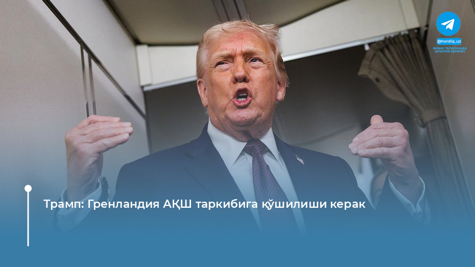 АҚШ президенти Доналд Трамп Гренландияни АҚШ миллий хавфсизлиги учун стратегик аҳамиятга эга деб атаб, уни қўшиб олиш зарурлигини билдирди.
