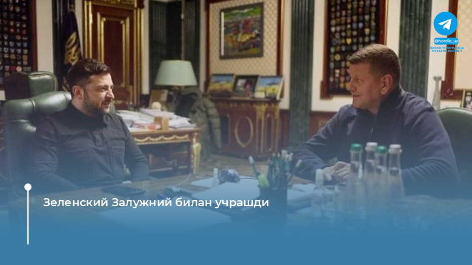 «Валерий Залужний билан учрашдик. Уни Украина жамоасидаги фаолияти учун миннатдорлик билдирдим. Энг муҳими, биз барчамиз биргаликда Украина мустақиллигини, миллий манфаатларимизни ва халқимизни ҳимоя қиляпмиз. Ҳозир долзарб бўлган ҳамда бизни янада мустаҳкамлай оладиган дипломатик вазифаларни муҳокама қилдик», — деб ёзди Зеленский учрашув ҳақида.