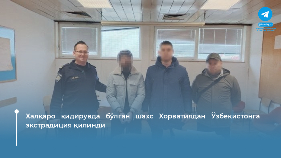 Хорижда Халқаро қидирувда бўлган шахс Хорватиядан Ўзбекистонга экстрадиция қилинди 19.01.2026 05:34 Фирибгарликда айбланиб, халқаро қидирувда бўлган фуқаро Загреб шаҳрида қўлга олиниб, Ўзбекистонга экстрадиция қилинди. Экстрадиция жараёнида Ўзбекистоннинг Венгриядаги консуллиги амалий ёрдам кўрсатган. Дўстларингизга ҳам юборинг: Continue Reading Previous Россия Украинани электр энергияси ва иссиқликсиз қолдирмоқчиNext Эрон ўз аҳолисининг аксарияти учун интернетни бутунлай ўчириб қўйишга ҳозирланмоқда — The Guardian Мавзуга доир мақолалар Хорижда Эрон ўз аҳолисининг аксарияти учун интернетни бутунлай ўчириб қўйишга ҳозирланмоқда — The Guardian 19.01.2026 06:03 Хорижда Россия Украинани электр энергияси ва иссиқликсиз қолдирмоқчи 19.01.2026 04:31 Хорижда Ўзбекистон терма жамоаси легионери яна юртимизга қайтмоқда 19.01.2026 04:03