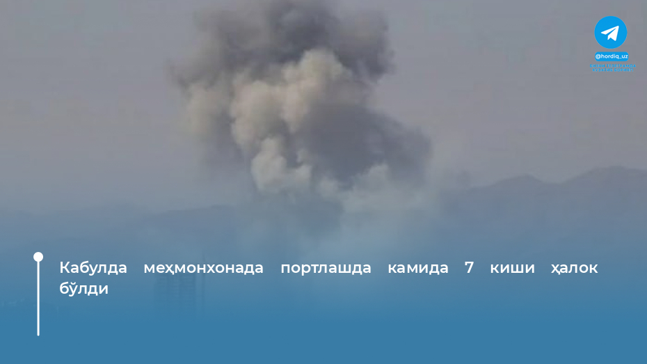 Афғонистон пойтахти Кабулдаги меҳмонхонадаги портлашда камида 7 киши ҳалок бўлди, бир нечта одамлар жароҳатланди.