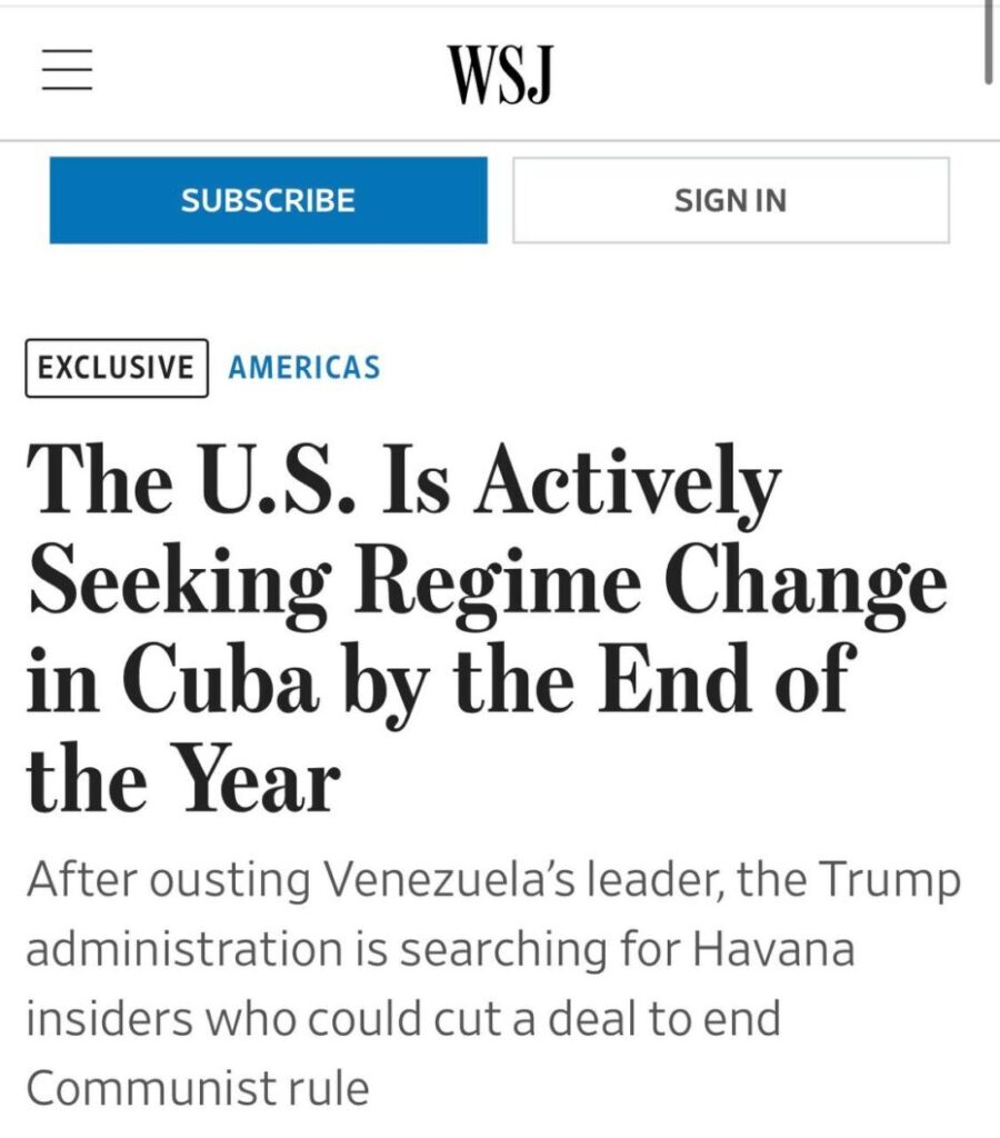 The Wall Street Journal’нинг ёзишича, АҚШ 2026-йил охиригача Кубада режим ўзгартиришни режалаштирмоқда.