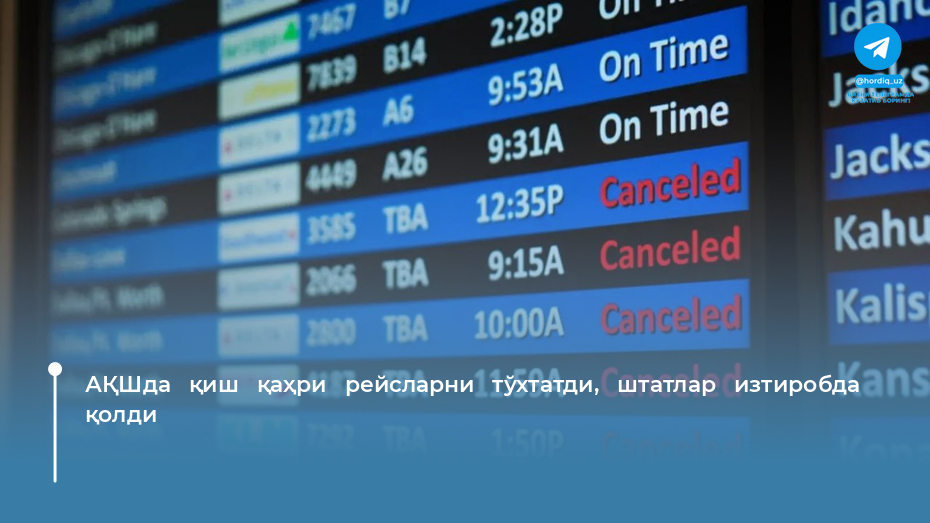 АҚШда қиш қаҳри рейсларни тўхтатди, штатлар изтиробда қолди