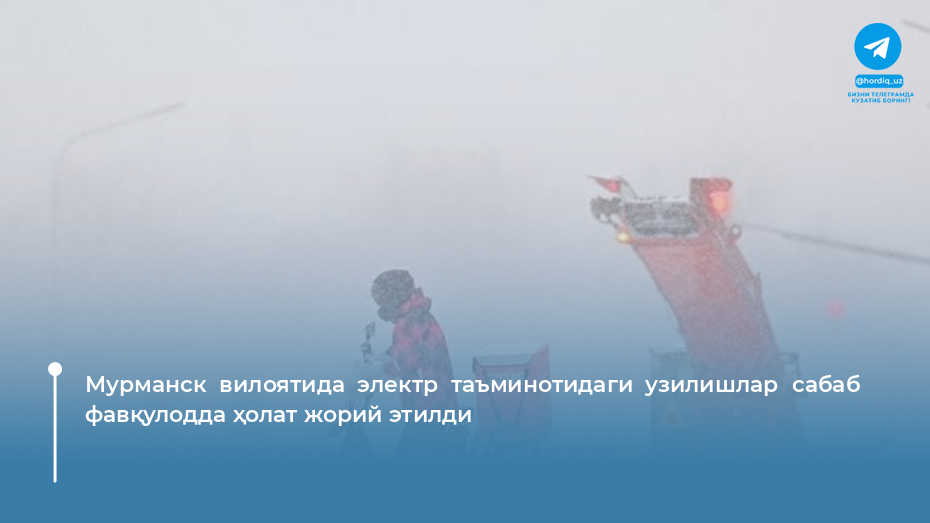 Россиянинг Мурманск вилояти ҳудудида электр таъминотидаги узилишлар туфайли фавқулодда ҳолат режими эълон қилинди.