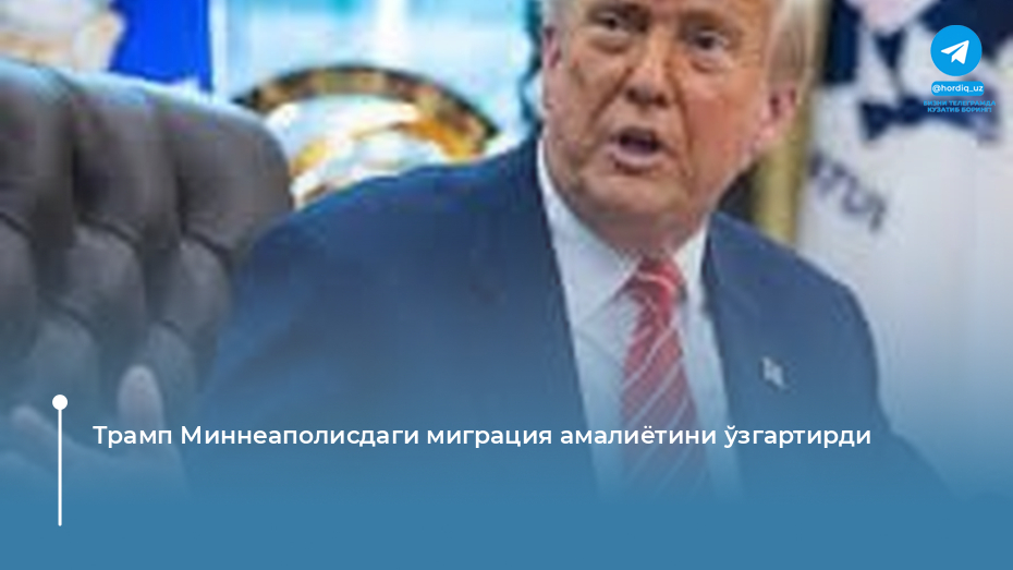 АҚШ президенти Дональд Трамп Миннеаполисда ўтказилаётган кенг кўламли миграция амалиётини қайта кўриб чиқди. Бу қарор федерал агентлар томонидан 37 ёшли АҚШ фуқароси Алекс Претти отиб ўлдирилганидан сўнг юзага келган жамоатчилик норозилиги фонида қабул қилинди.