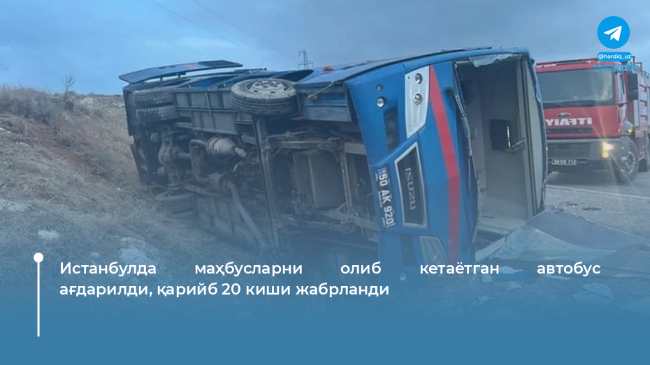 Истанбул шаҳрида Туркия жандармериясининг шаҳар бошқармасига тегишли, маҳбусларни ташиётган автобус йўл-транспорт ҳодисасига учраб, ағдарилди. Бу ҳақда Report нашри шаҳар маъмуриятининг X (собиқ Twitter) ижтимоий тармоғидаги баёнотига таяниб хабар берди.