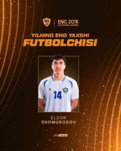 Италиянинг “Рома” ҳамда “Туркиянинг “Башакшеҳир”даги фаолияти, шунингдек терма жамоадаги етакчилик роли Шомуродовни 2025-йилнинг “энг яхши футболчиси”га айлантирди.