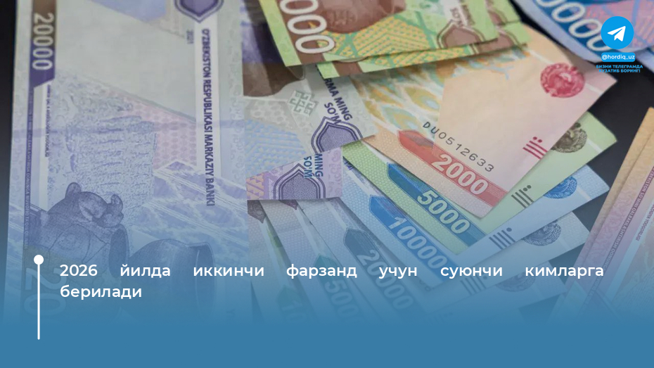 2026 йилда иккинчи фарзанд учун суюнчи кимларга берилади