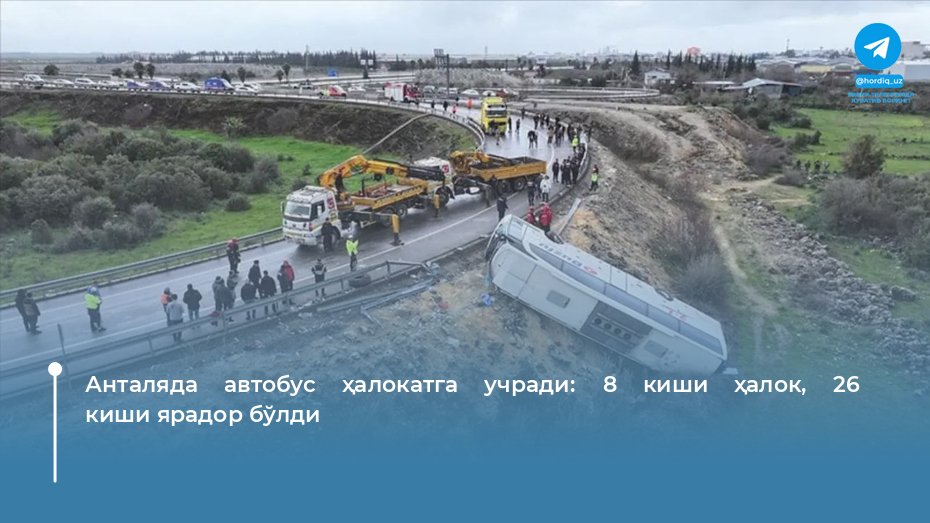 Анталяда автобус ҳалокатга учради: 8 киши ҳалок, 26 киши ярадор бўлди