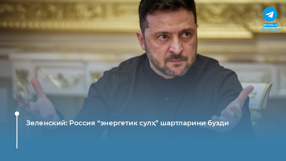 Украина президенти Владимир Зеленский Россияни АҚШ президенти Дональд Трамп таклиф этган “энергетик сулҳ” шартларини бузганликда айблади. Унинг таъкидлашича, Москва берилган ваъдаларга риоя қилмаган.