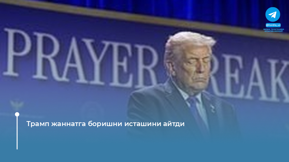 АҚШ президенти Доналд Трамп ўзини идеал номзод деб ҳисобламасада, жаннатга боришга умид қилаётганини билдирди. У бу ҳақда Вашингтонда бўлиб ўтган Миллий ибодат нонуштасида сўзлади. Нутқ Оқ уйнинг YouTube канали орқали жонли эфирда намойиш этилди.