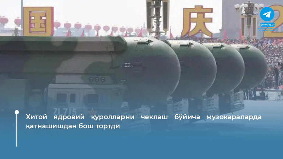 Хитой ядровий қуролларни чеклаш бўйича музокараларда қатнашишдан бош тортди