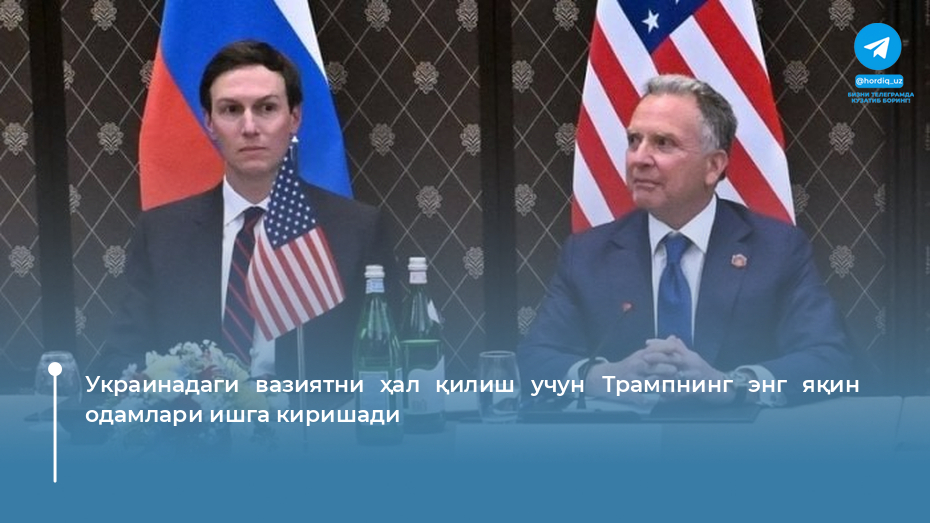 АҚШ етакчиси Дональд Трамп унинг махсус вакили Стив Уиткофф ва куёви Жаред Кушнер Украина бўйича музокараларда прогрессга эришишга қодир, деб ҳисоблайди.