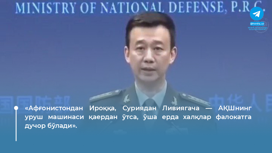 Хитой Миллий мудофаа вазирлиги АҚШни кескин танқид қилди: