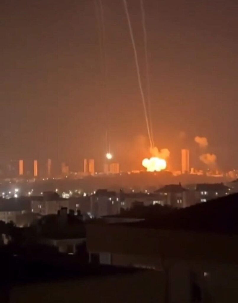 Ракеталар Эронники, портлаётган жойи Тель-Авив (видео)