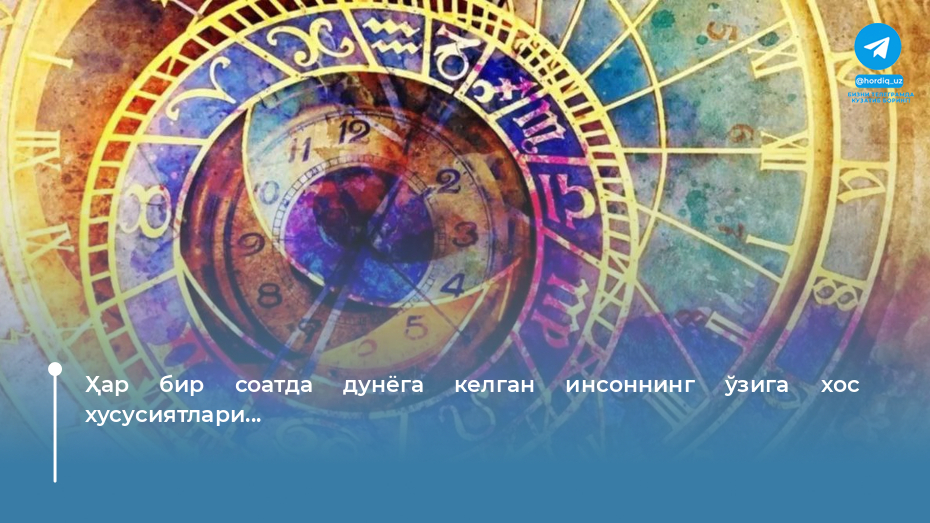 Шундай қилиб, туғилган соат ҳар бир инсоннинг характери, қобилиятлари ва ҳаётий йўналишини белгилайди.