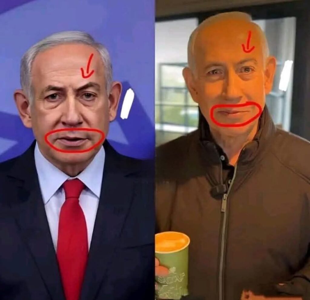 «Хабарингиз бор, Эрон матбуоти бугун сионистларга бош бўлиб, Эронга қирғин олиб келган Нетаняхунинг ўлдирилгани тўғрисида кетма-кет мақолалар чоп этмоқда ва видеороликлар тарқатмоқда. Бугун тарқатилган ана шу маълумотларнинг барчасини ёлғонга чиқариш учун Исроил томони мана шу сурат ва унга тегишли видеони ижтимоий тармоқларга жойлади. Қизиқ томони, суратнинг ўнг томонидаги шахс Нетаняхудан анча фарқ қилади. Ҳатто оддий кўз билан ҳам уларнинг фарқини ажратиб олиш мумкин. Шундан кейин яна гуриллаган янгиликлар бирин-кетин тарқала бошлади…