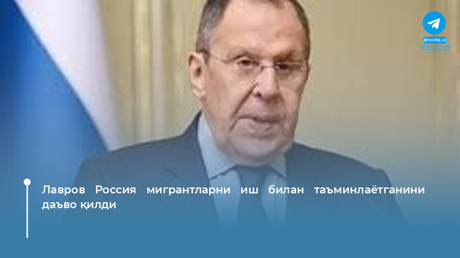 Россия ташқи ишлар вазири Сергей Лавров мамлакатда ишчи кучи танқислиги ва хорижий мигрантлар масаласи ҳақида тўхталиб ўтди. Унинг сўзларига кўра, Россия ҳукумати хориждан атайлаб одам жалб қилаётгани йўқ, балки Россияда ишлашни истаган минглаб хорижликларнинг мурожаатларини кўриб чиқмоқда.