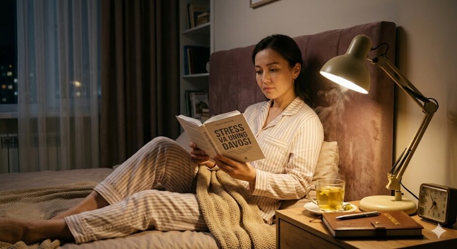 Мутолаа: Фақат қоғоз китоб ўқинг. Электрон қурилмаларнинг кўк нури уйқу гормони (мелатонин)ни камайтиради. Бирор мураккаб ёки зерикарлироқ китоб тезроқ уйқу келишига ёрдам беради.