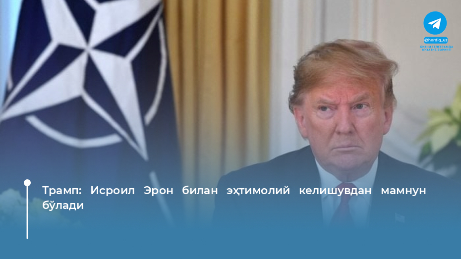 АҚШ президенти Дональд Трамп журналистлар билан мулоқотда Эрон билан эҳтимолий сулҳ келишуви ва унинг оқибатлари ҳақида фикр билдирди.