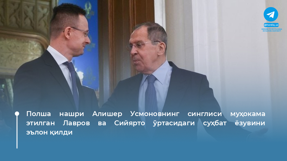 Полша нашри Алишер Усмоновнинг синглиси муҳокама этилган Лавров ва Сийярто ўртасидаги суҳбат ёзувини эълон қилди