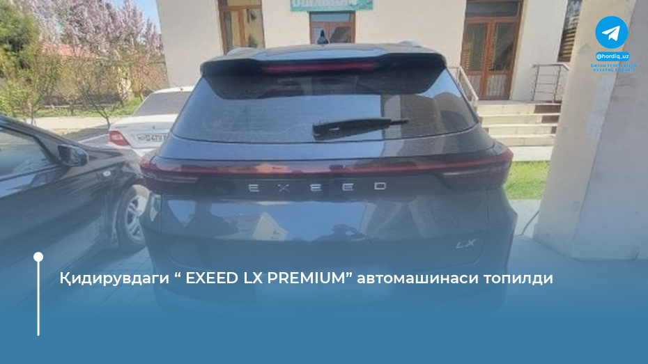 Қидирувдаги “ EXEED LX PREMIUM” автомашинаси топилди