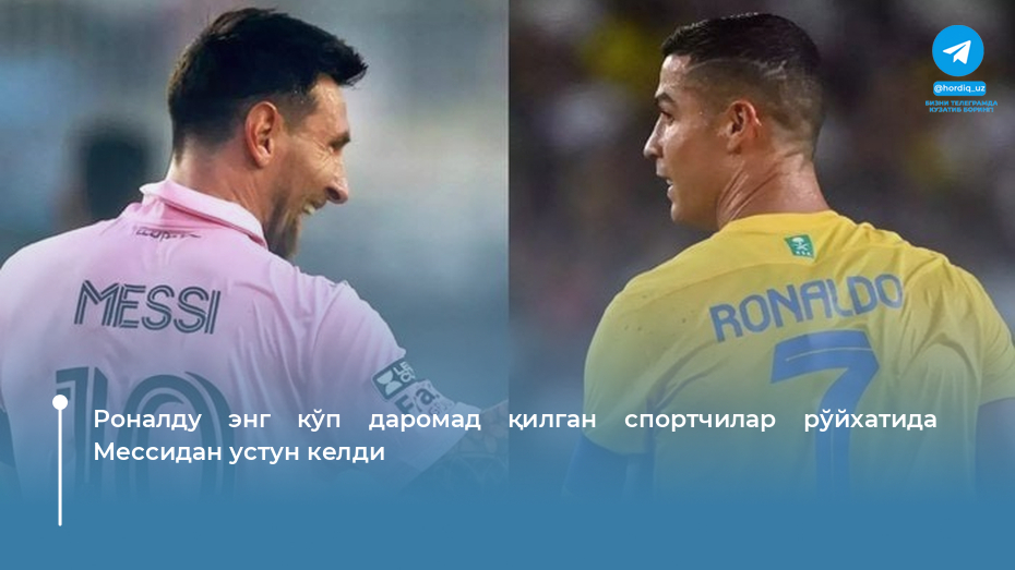Роналду энг кўп даромад қилган спортчилар рўйхатида Мессидан устун келди