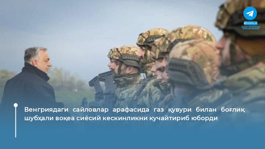Маълумотларга кўра, мамлакатда кутилаётган муҳим сайловлар арафасида вазият кескин тус олди. Бош вазир Виктор Орбан Сербия билан чегарадош ҳудуддаги стратегик газ қувурини ҳарбий қўриқловга олишни буюрди. Бу қарор Сербия томонидан қувур яқинида улкан кучга эга портловчи модда топилгани ҳақидаги хабарлардан сўнг қабул қилинди.