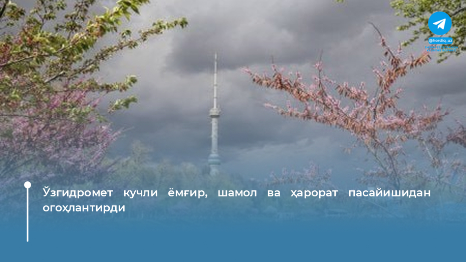 Ўзгидромет кучли ёмғир, шамол ва ҳарорат пасайишидан огоҳлантирди