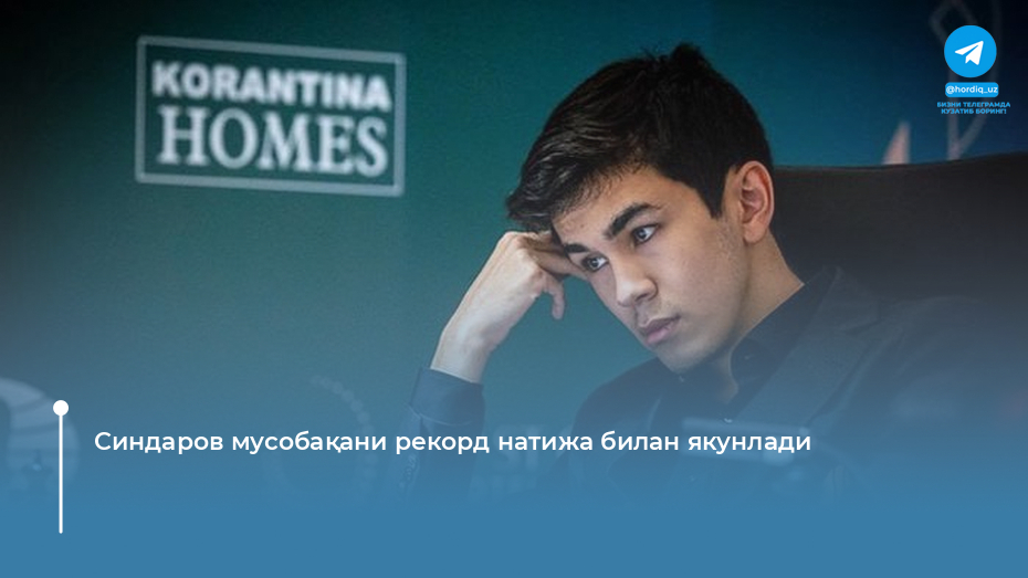 Ўзбекистонлик шахматчи турнирни мағлубиятсиз якунлади. Шу билан бирга, 14 имкониятдан 10 очко жамғарган ҳолда россиялик Ян Непомняшийга тегишли бўлиб турган рекордни (9,5 очко) янгилади.