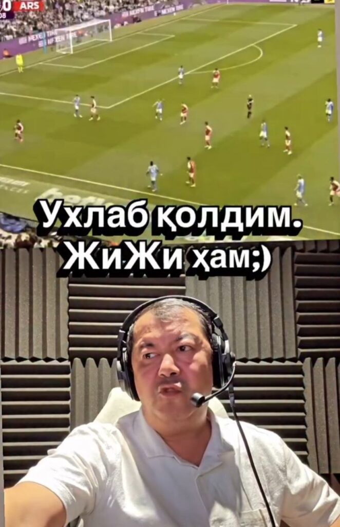 У ҳам банда, у ҳам нималар биландир овора бўлиб қолади. Мухлисларга қизиқ-қизиқ маълумотларни етказмоқчи бўлади, аммо, лекин, бироқ кейин ўзи мана шундай аҳволга тушиб қолади. Ҳа, у профессионал шарҳловчи. Аммо бу дегани хатолардан, эътиборсизликлардан холи дегани эмас. Тўғриси, ўйинни жонли кўрдим. Хайрулланинг «ухлаб» қолганини сездим… Аммо у вазиятдан чиқиб кетди.