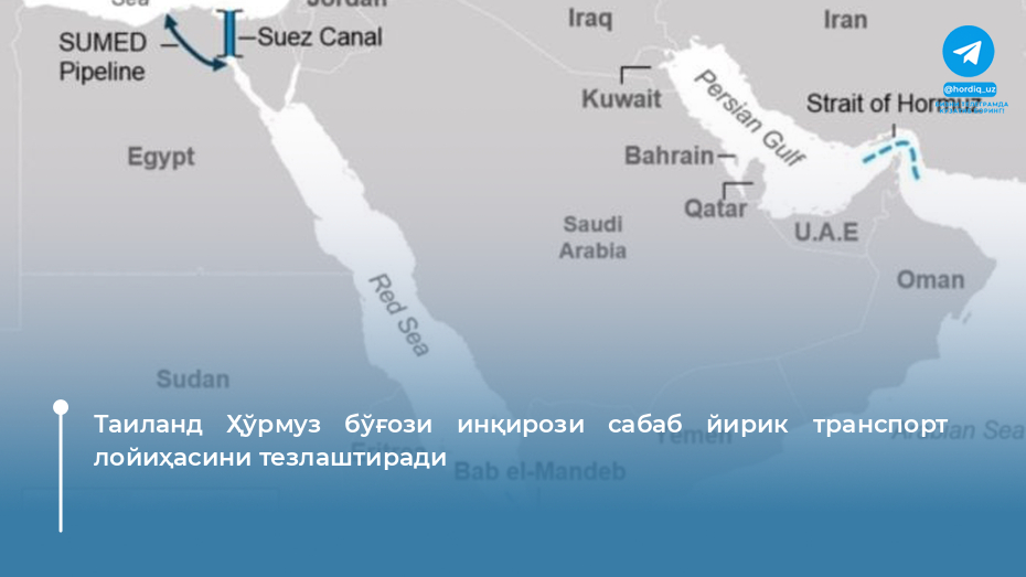 Таиланд Ҳўрмуз бўғози инқирози сабаб йирик транспорт лойиҳасини тезлаштиради