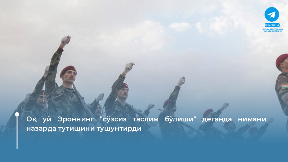 Эроннинг "сўзсиз таслим бўлиши" (капитуляцияси) шуни англатадики, Америка етакчиси Дональд Трамп Теҳрондан бошқа хавф туғилмаслигини ўзи ҳал қилади. Бу ҳақда...