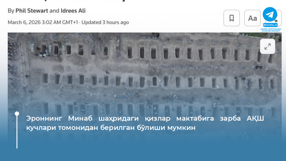 Эроннинг Минаб шаҳридаги қизлар мактабига зарба АҚШ кучлари томонидан берилган бўлиши мумкин
