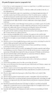 Европа мамлакатларининг тинчлик режаси 24 банддан иборат: 1. Урушни тўхтатишга ёрдам берадиган ва унинг қайта бошланишини олдини оладиган келишувлар...